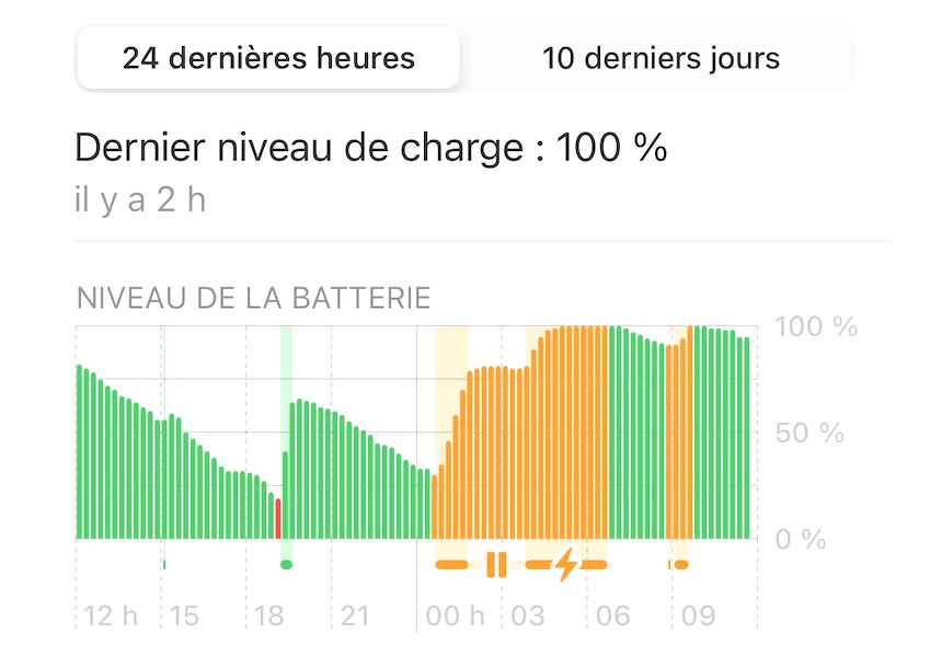 Le résultat : une courbe d’autonomie, lisible en un clin d’œil, qui montre précisément à quel rythme la batterie baisse, heure par heure. Bonus ultime : la possibilité d’afficher la courbe comme un widget sur l’écran d’accueil de l’iPhone
